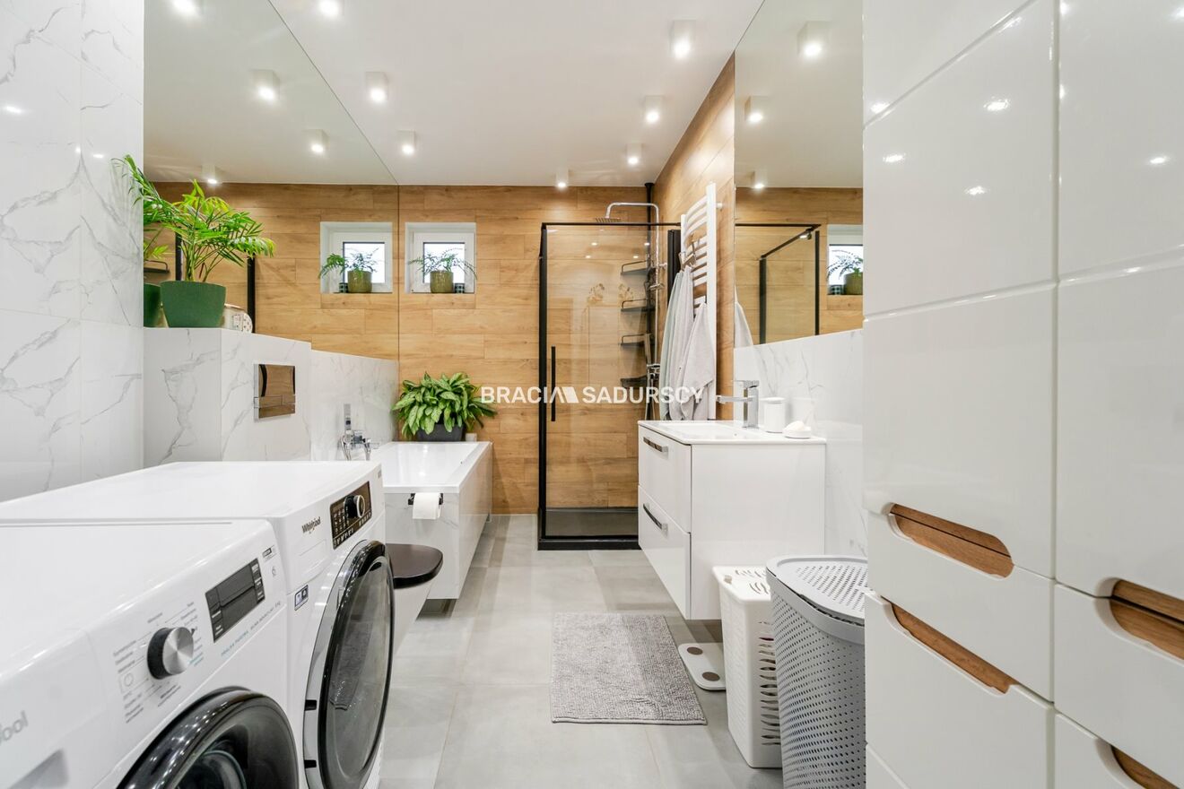 imponująca łazienka o powierzchni 9 m² , z dużą wanną, przestronnym prysznicem oraz zestawem pralniczym,